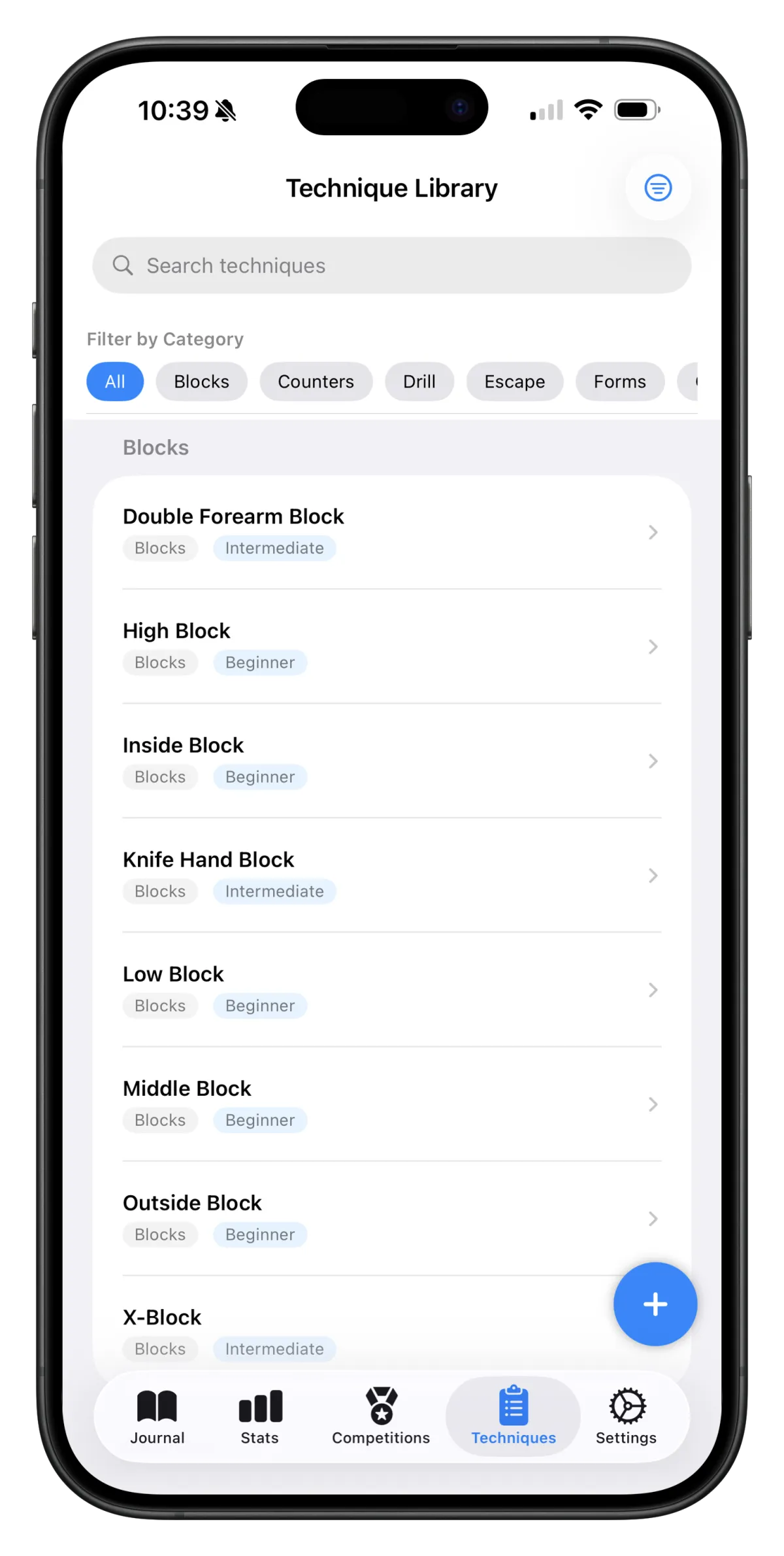 Whether you just want to keep track of forms/katas or belt tests, or you want to build out a library of notes on techniques, the Technique Reference function is a phenomenal way to categorize and keep track of all of the important information while easily being able to find it as well.